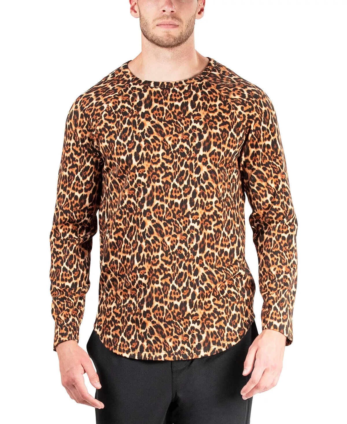 Natori Men's Modal/Cotton Kaede Leopard-Print Raglan Shirt Leopard-Medium