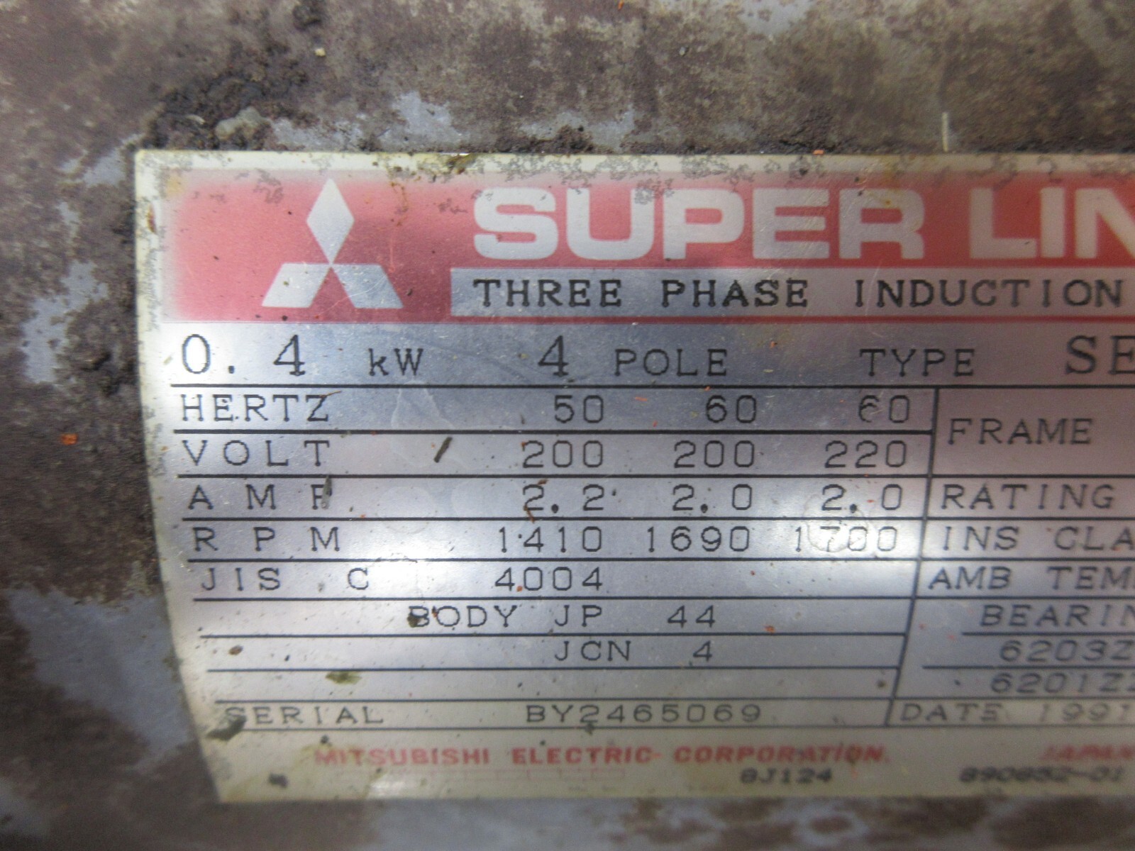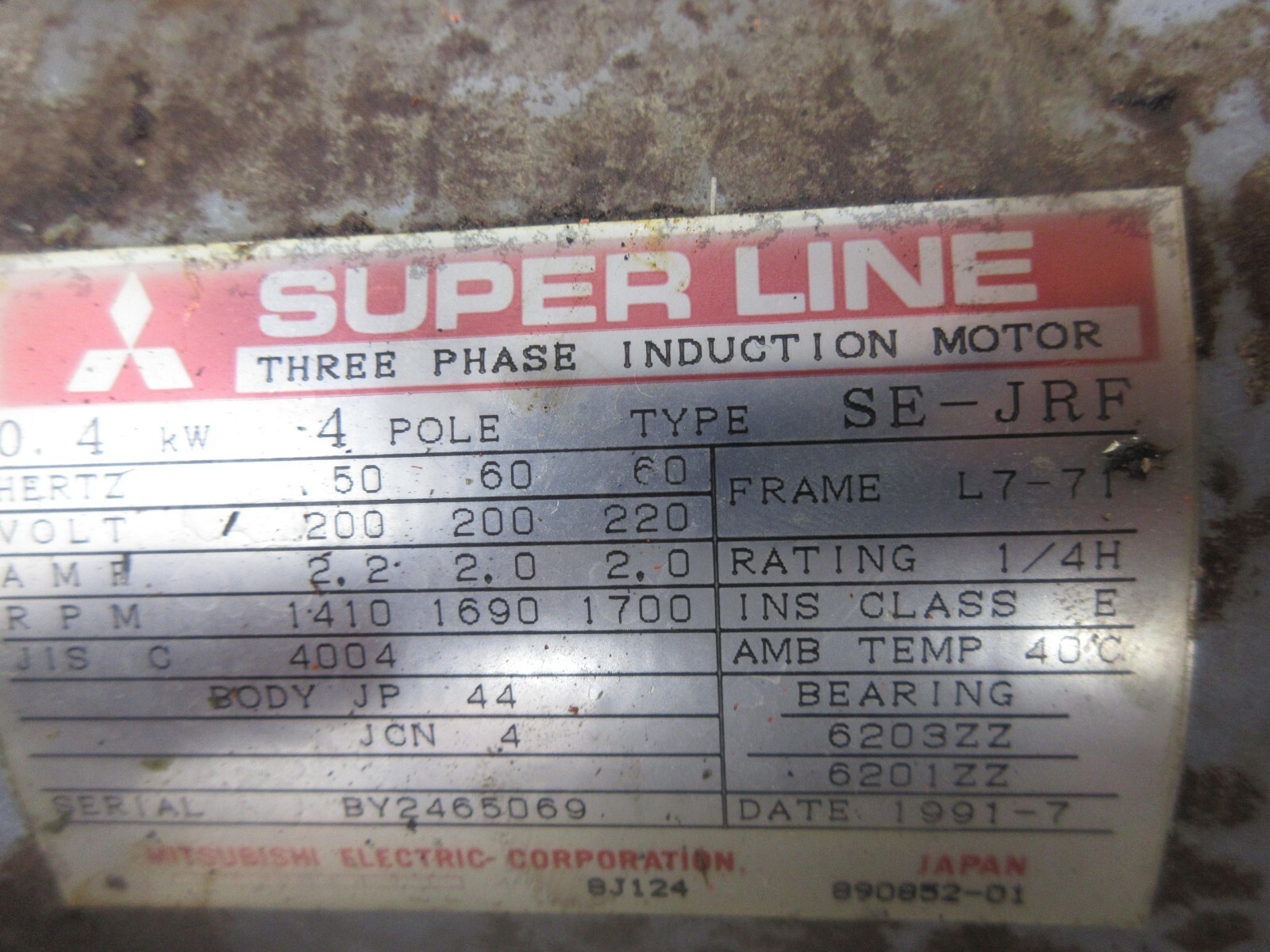 Mori Seiki MV-40B CNC Mitsubishi Superline Moteur 0.4KW 4 Pôle Se-Jrf