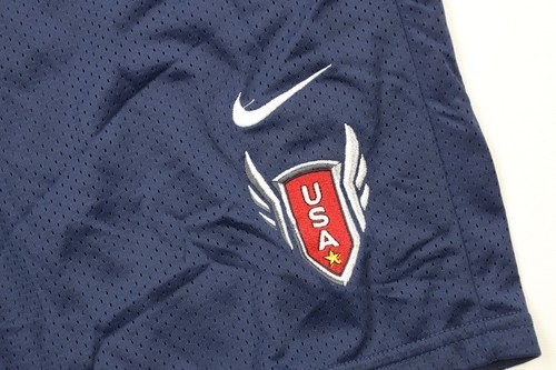 Vintage Nike Mens Small Spell Out USA Track and Field Mesh Shorts Blue Nylon