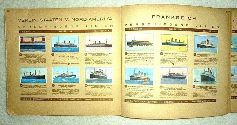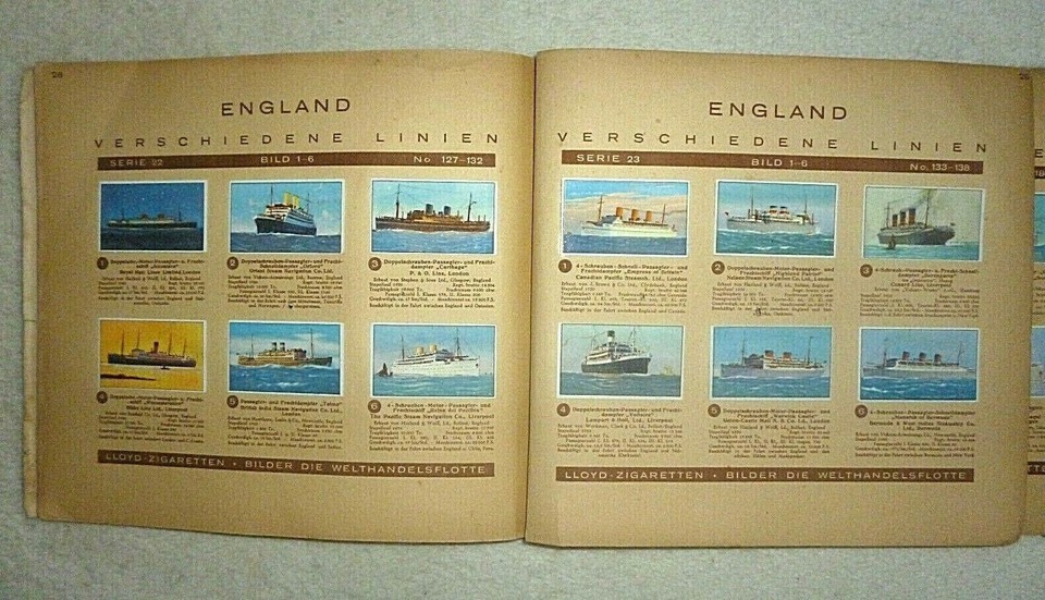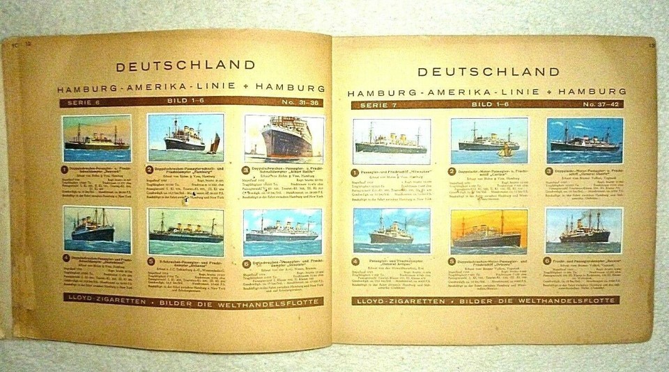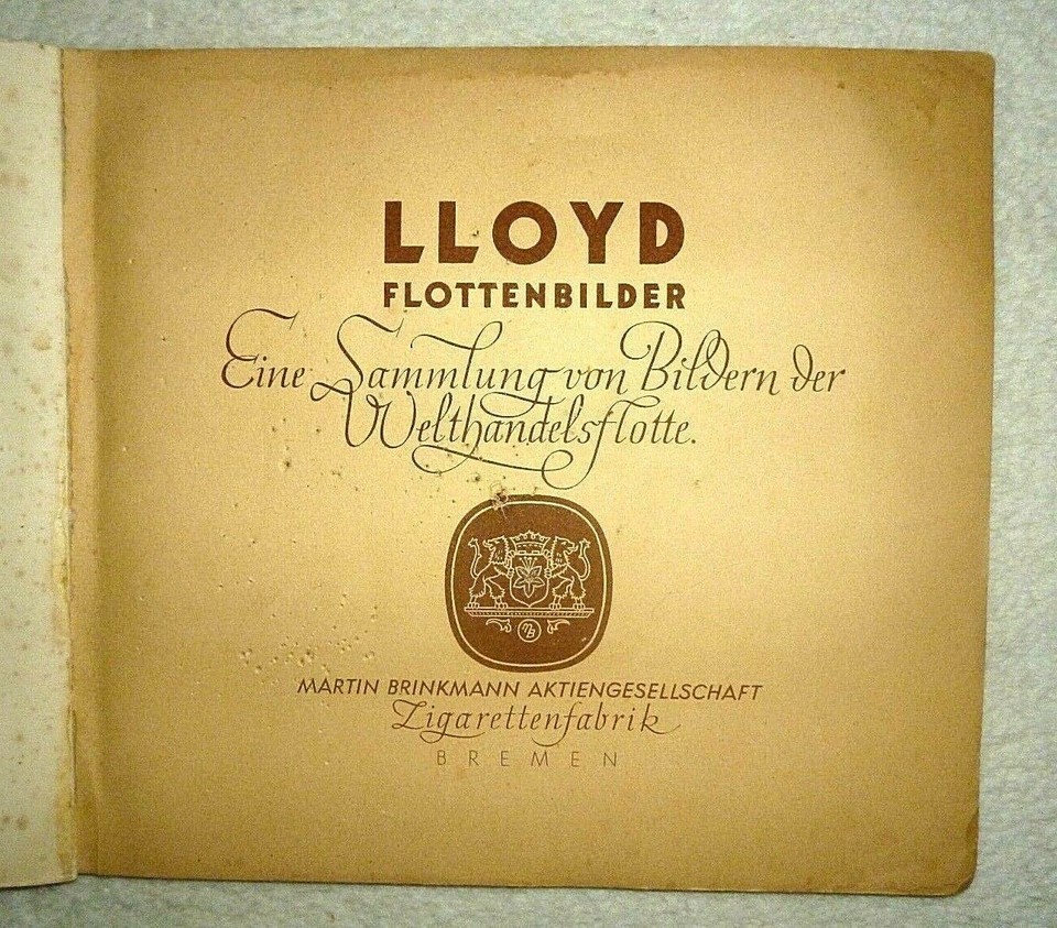 For sale is a wonderfull, vintage, rare 1930s LLOYD Flottenbilder der Welt-Handelsflotte Trading Cards Collectors Book published by Brinkmann Zigarettenfabrik Bremen, Germany