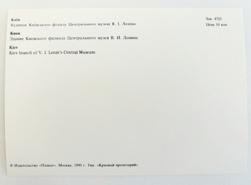 1990 Russian Kiev Postcard Cold War Era Vladimir Lenin Museum Branch C82A3