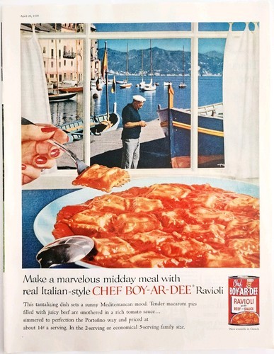 1958 Chef Boy Ar Dee Ravioli Beef Sauce Advertisement Italian Pasta DWII21