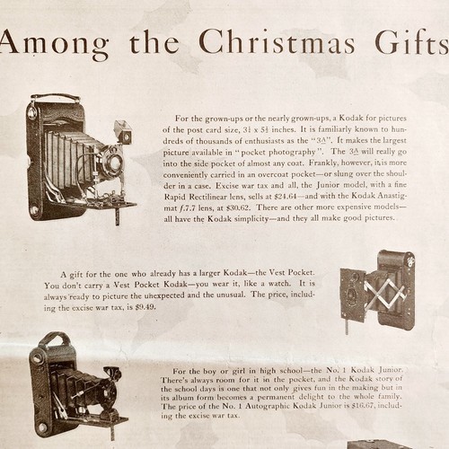 1920 Eastman Kodak Christmas Gifts Camera Advertisement Film Photography HM2E