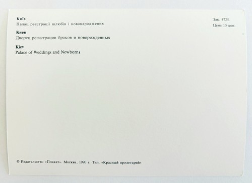 1990 Russian Kiev Postcard Cold War Era Palace Of Weddings And Newborns C82A3