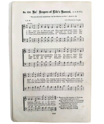 1883 Gospel Hymn Reapers Of Harvest Sheet and 50 similar items