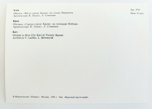 1990 Russian Kiev Postcard Cold War Era Obelisk Victory Square Monuments C82A3