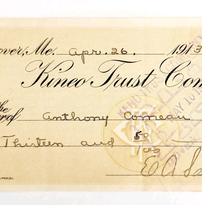 1913 Kineo Trust Company Bank Check E.A. and 48 similar items