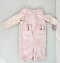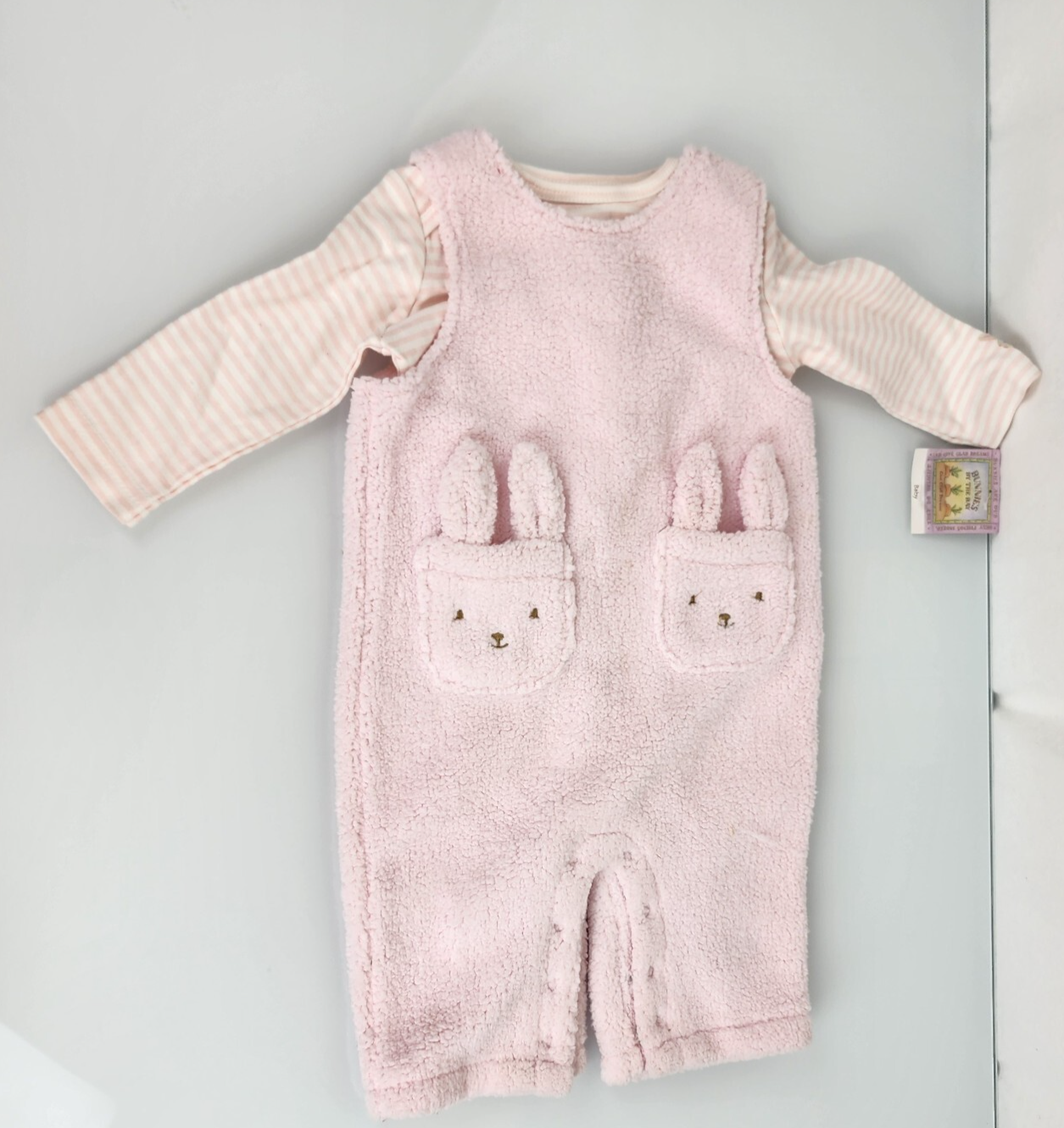 Vintage Baby Bunnies By the Bay Pink Sherpa Fleece Romper Overalls Shirt NEW 0-3