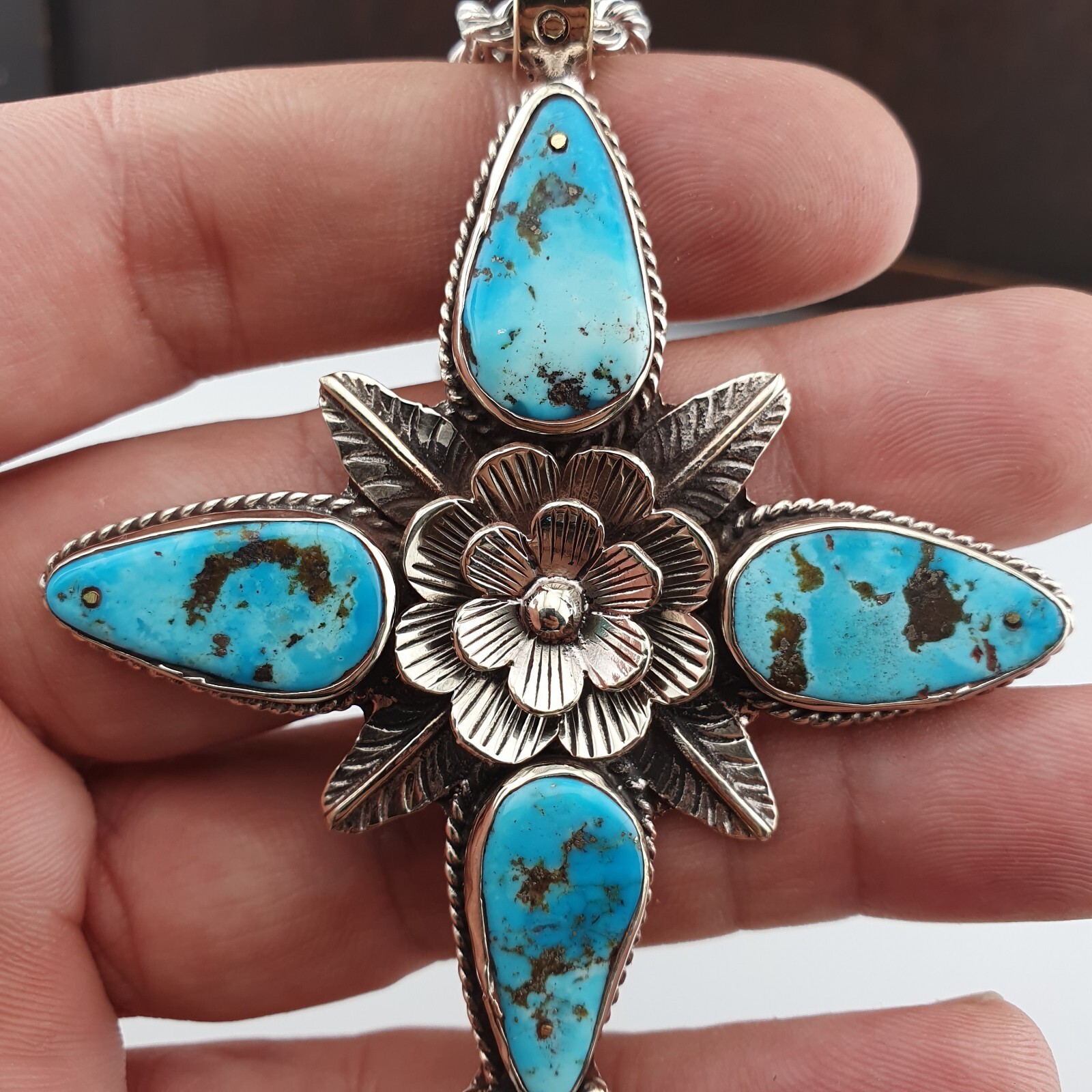 Big Men's Christian Cross Arizona Turquoise Pendant Chain Necklace