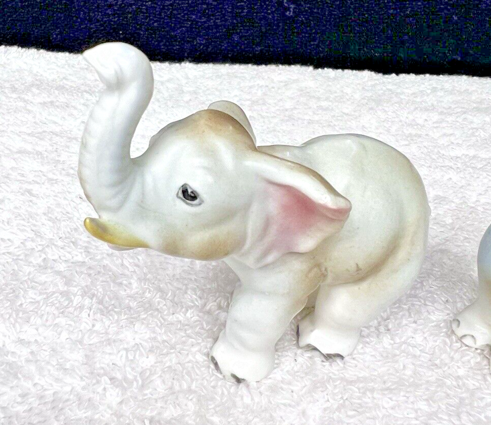 Pair Elephants Japan Trunk Up Baby w Head and 11 similar items
