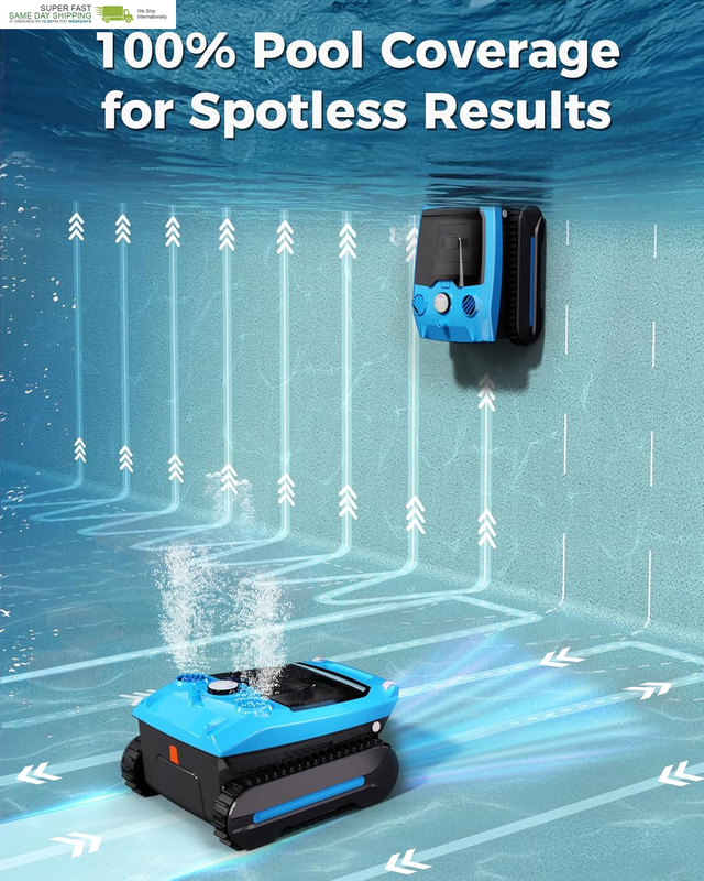 ?Powerful Cleaning Filtration System?As the robot?s bottom brush cleans the pool floor, it effortlessly sucks up hair, algae, leaves, fine sand, and debris through its intake ports into a 5.5L large-capacity filter basket. Clean water is then expelled through two top-mounted outlets, propelling the device forward for continuous movement.