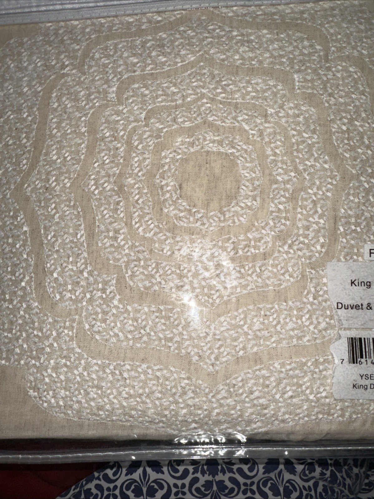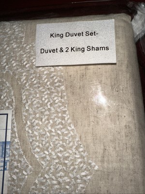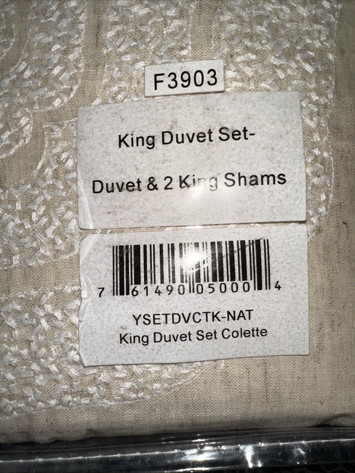 ANN GISH the ART of HOME COLETTE 3p KING DUVET NATURAL NIP $585 Beautiful