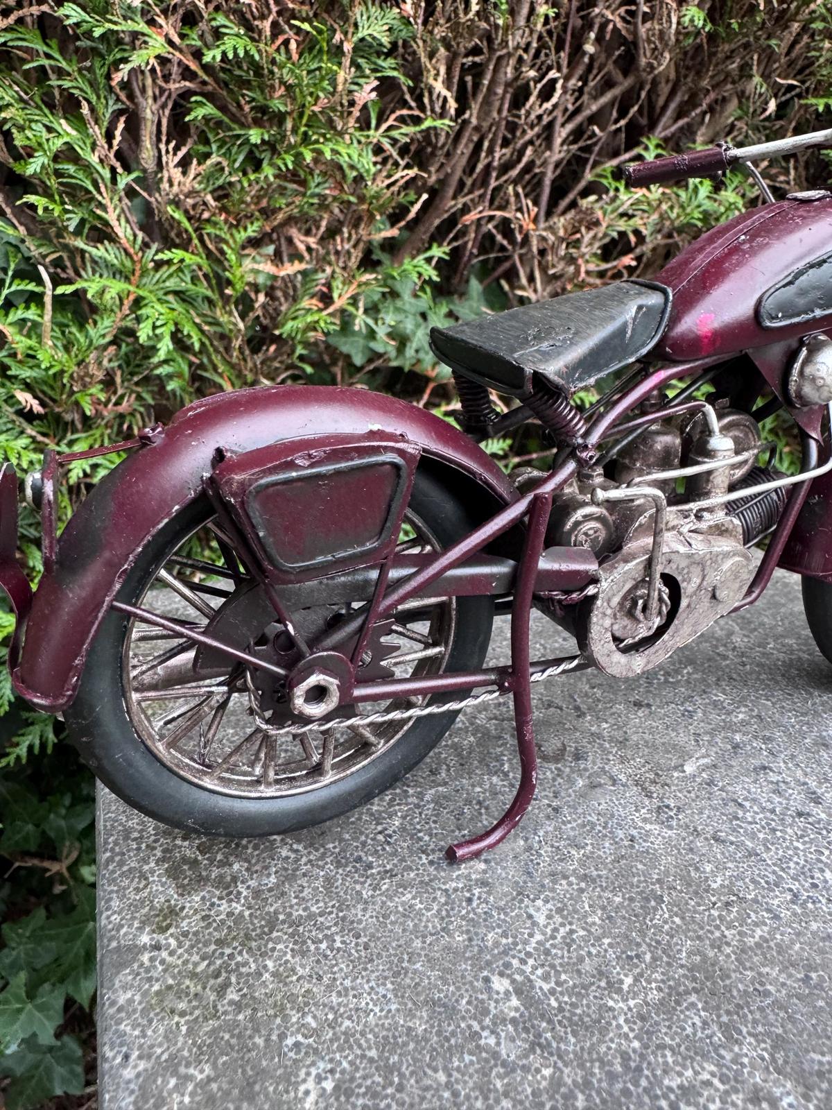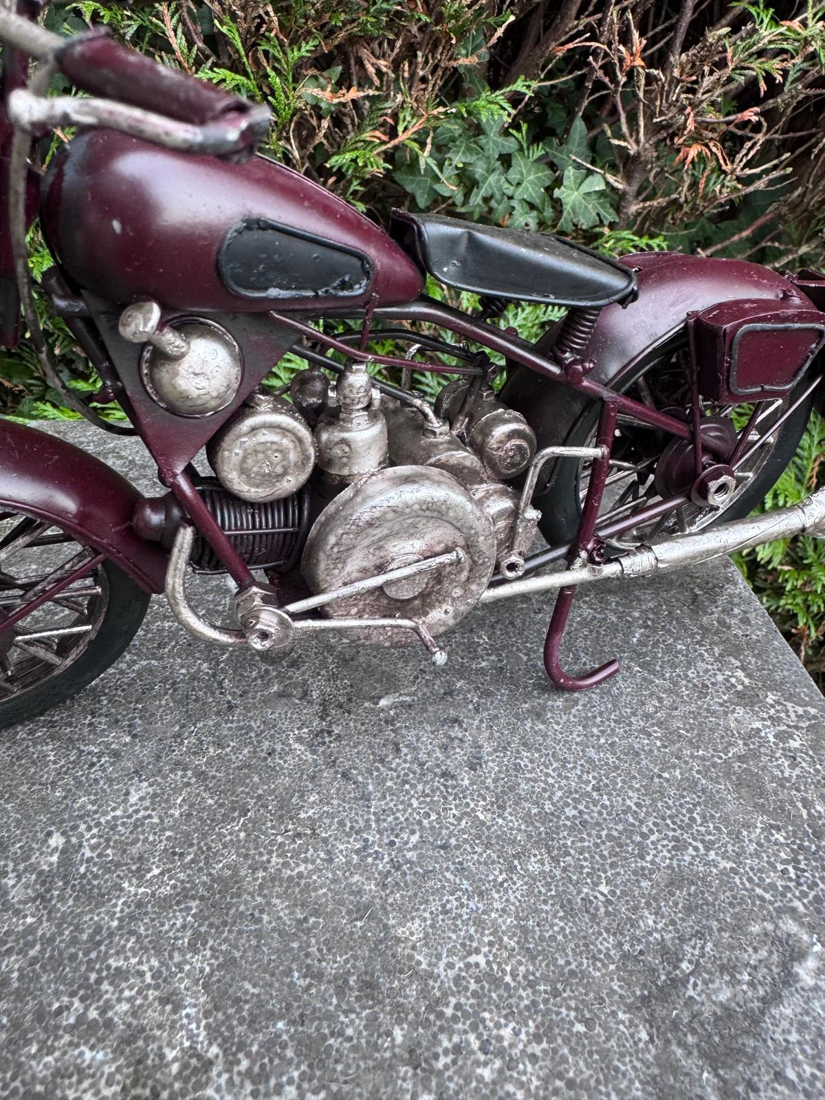 Iron sculpture of a classic motorcycle. A detailed and nostalgic piece perfect for biker enthusiasts, shelves, or vintage-themed interiors.