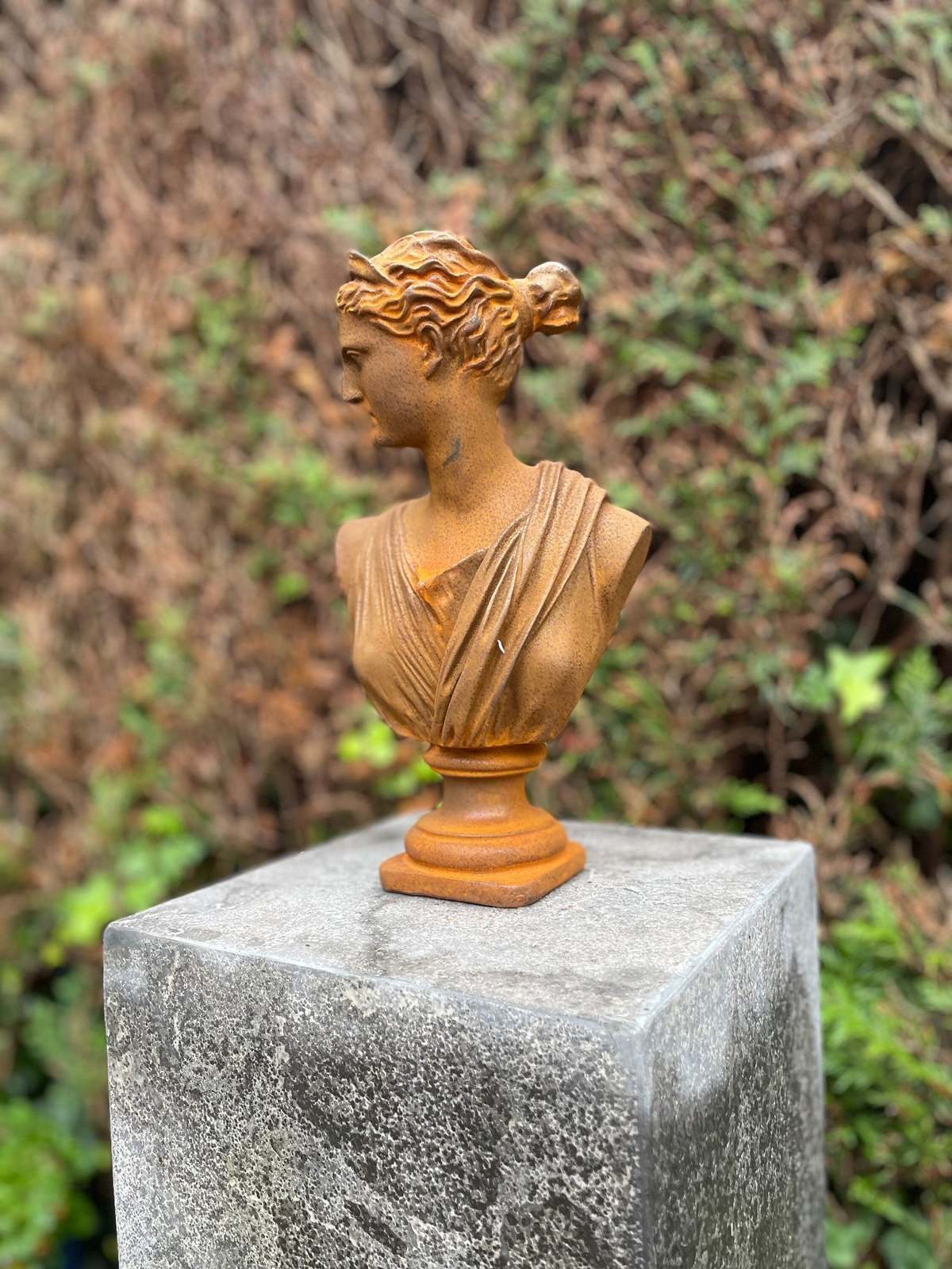 Tags: antique-style decor, classical woman statue, decorative head sculpture, female figure bust, Garden, Gardenstatue, Gift, Greco-Roman bust, iron bust sculpture, rust finish ornament, SpecialGift, SpecialGifts, timeless iron art, traditional art piece