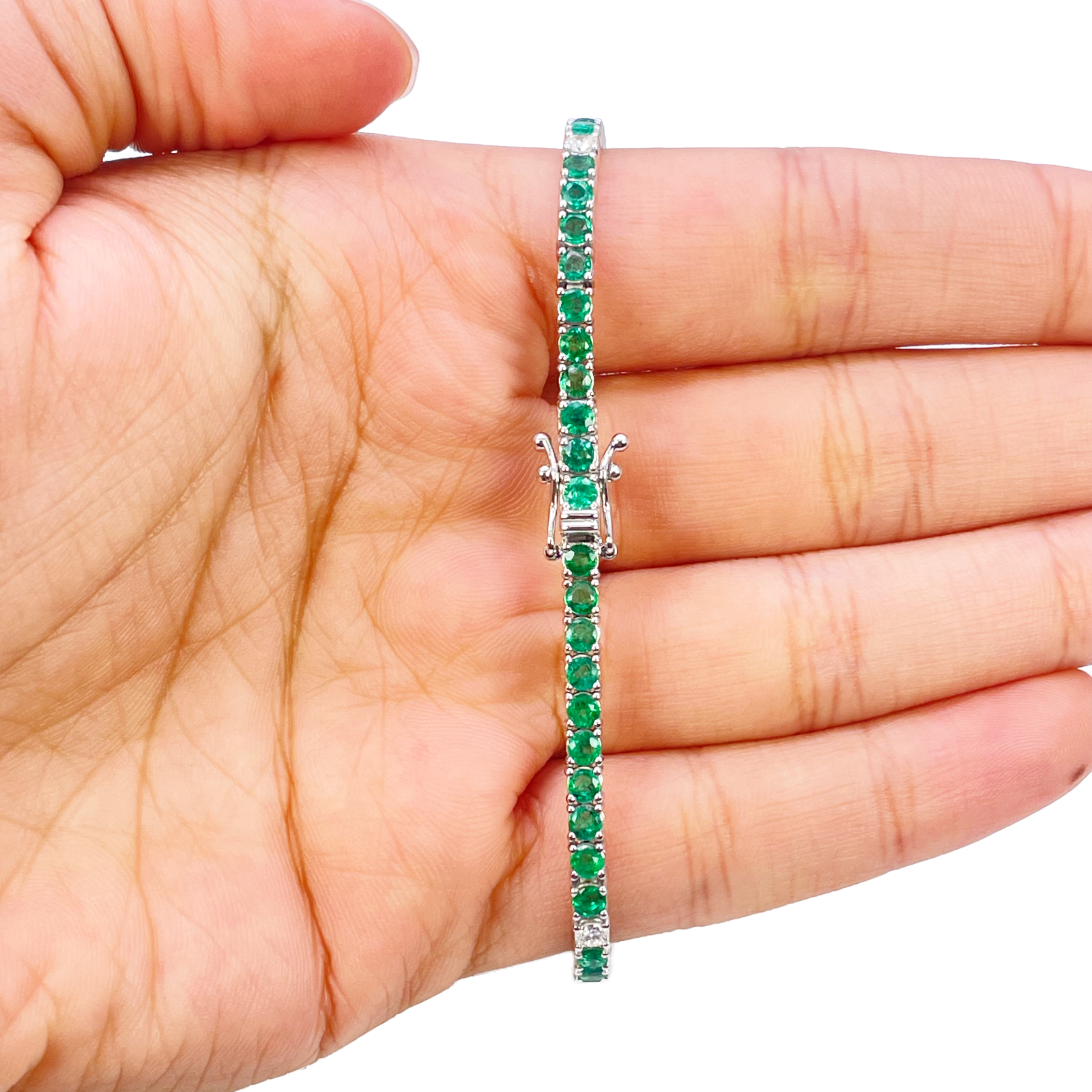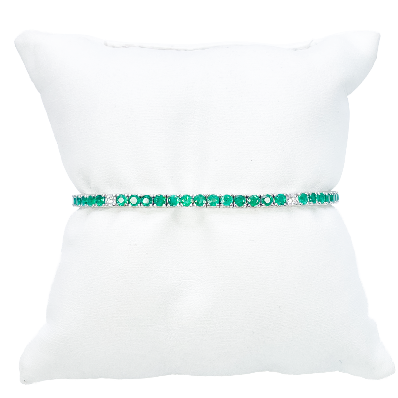 18ct White Gold Natural Round Emerald & Diamond Tennis Bracelet 4.15ct 7 Inches