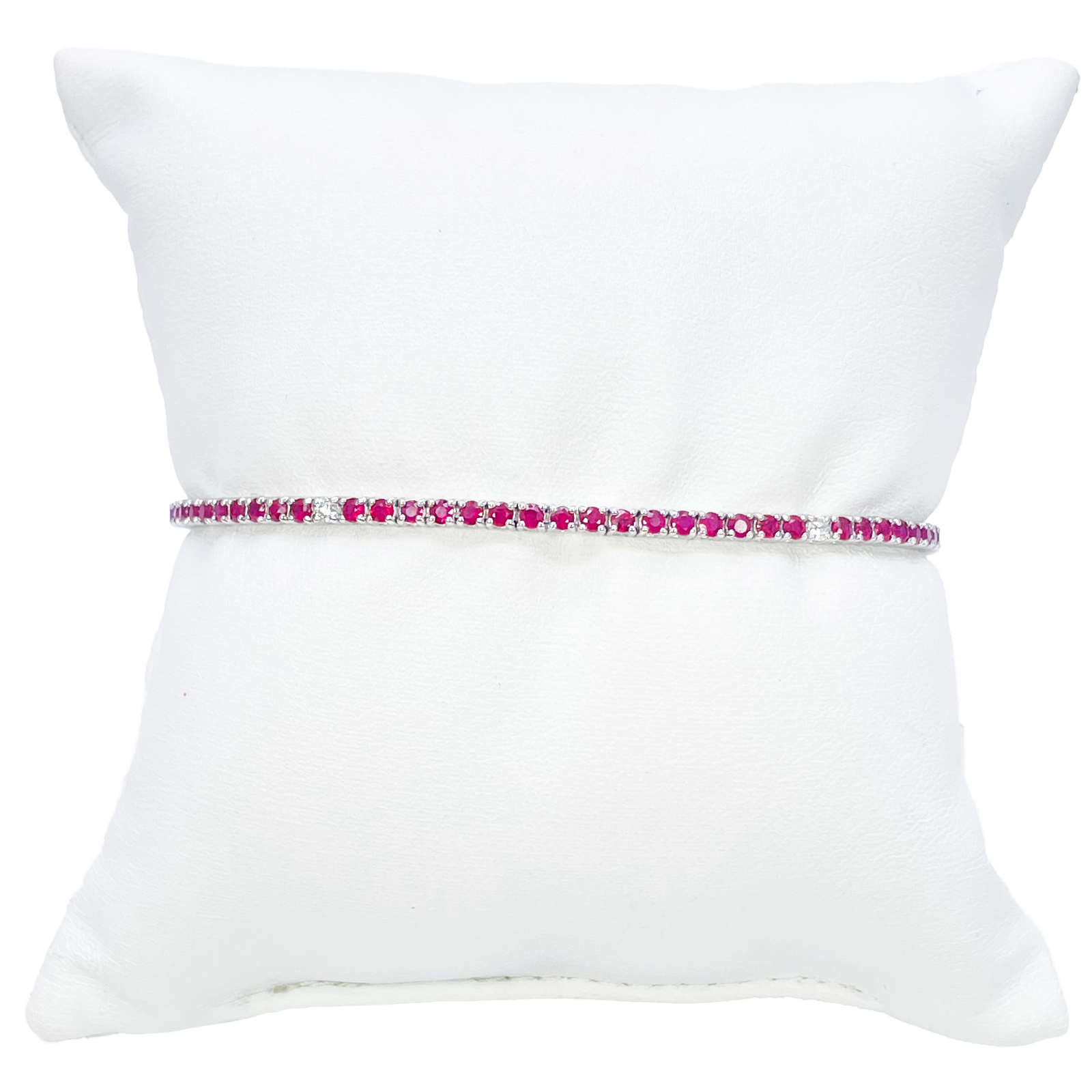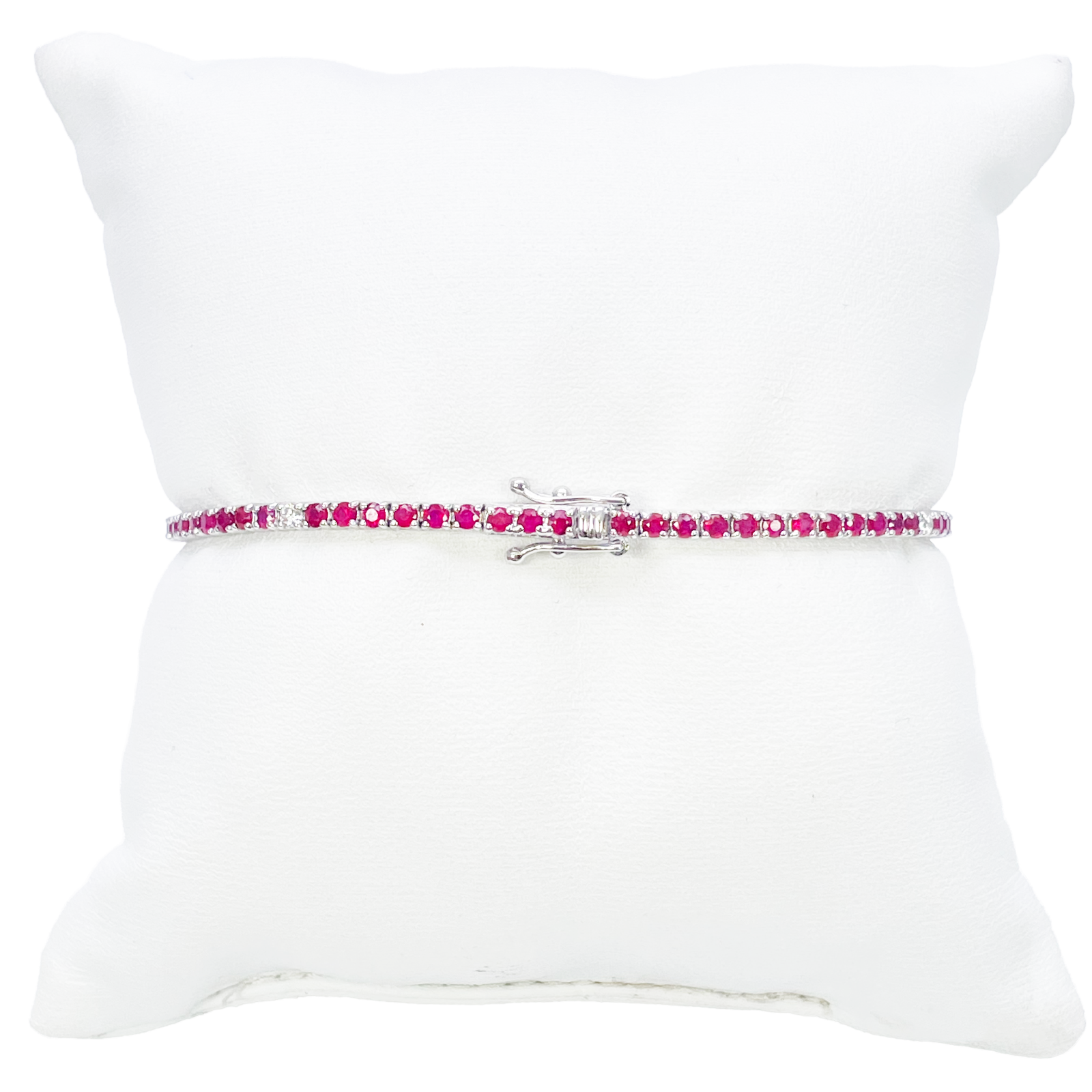 18ct White Gold Natural Round Ruby & Diamond Tennis Bracelet 3.25ct 7 Inches