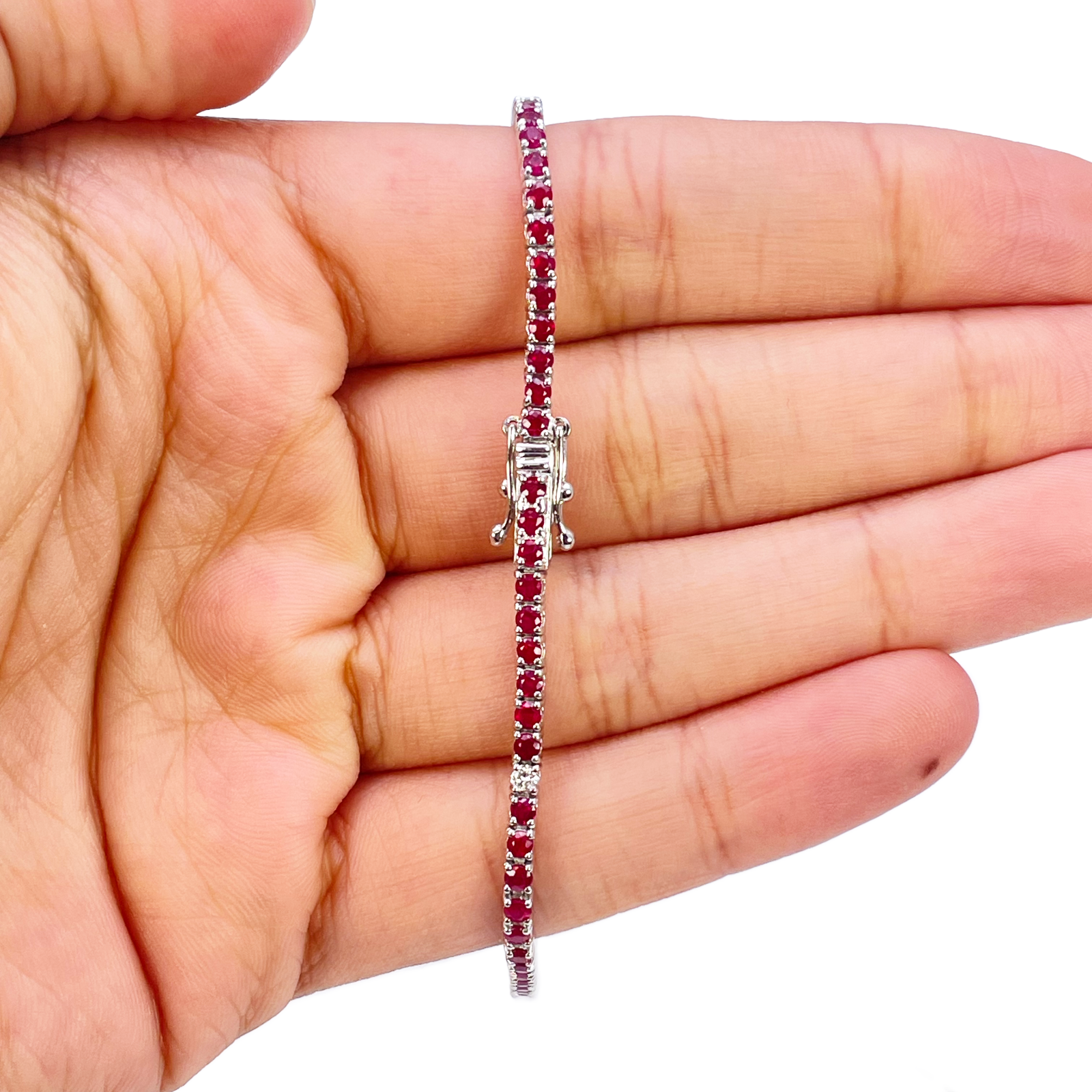 18ct White Gold Natural Round Ruby Diamond Tennis Bracelet 3.25ct 7 Inches