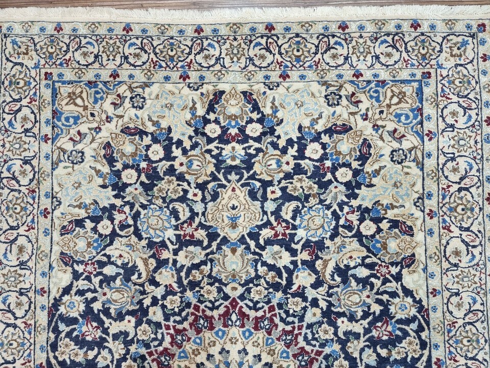 Handmade Vintage Persian Nain Rug With Silk 3.2' x 4.6' (96cm x 140cm), 1980s -