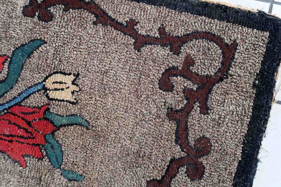 Handmade antique American Hooked rug in floral design. The rug is from the end of 19th century in good condition, the rug has old restorations.