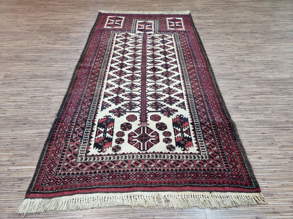Handmade Vintage Afghan Baluch Prayer Rug 2.7' x 5.5' (85cm x 168cm), 1950s - 1D