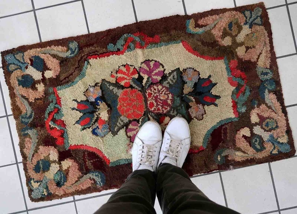 Alfombra antiguo Americano hooked hecho a mano