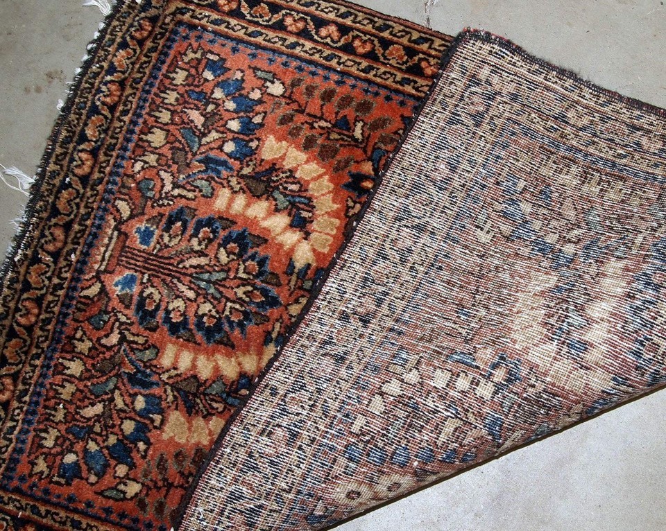 Handmade antique Persian Sarouk rug 2.1' x 3.2' (64cm x 97cm) 1920s - 1B817