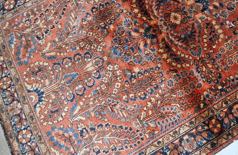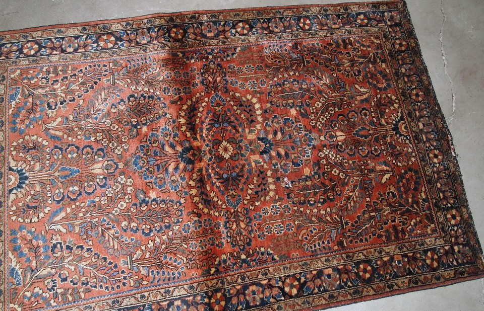 Handmade antique Persian Sarouk rug 3.4' x 5.5' (103cm x 167cm) 1920s - 1B837