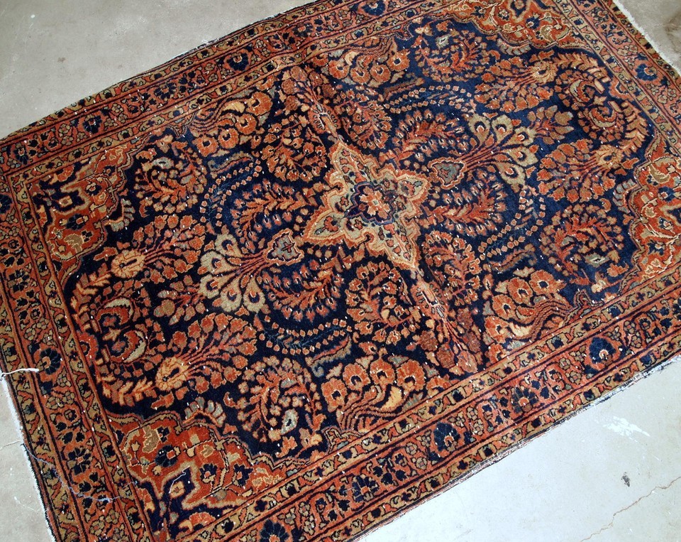 Handmade antique Persian Sarouk rug 3.4' x 5.3' (103cm x 161cm) 1920s - 1B844
