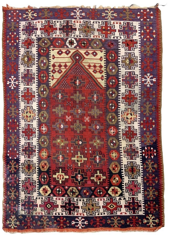 Handmade antique Turkish Anatolian prayer kilim 4.5' x 6.2' (137cm x 189cm) 1910