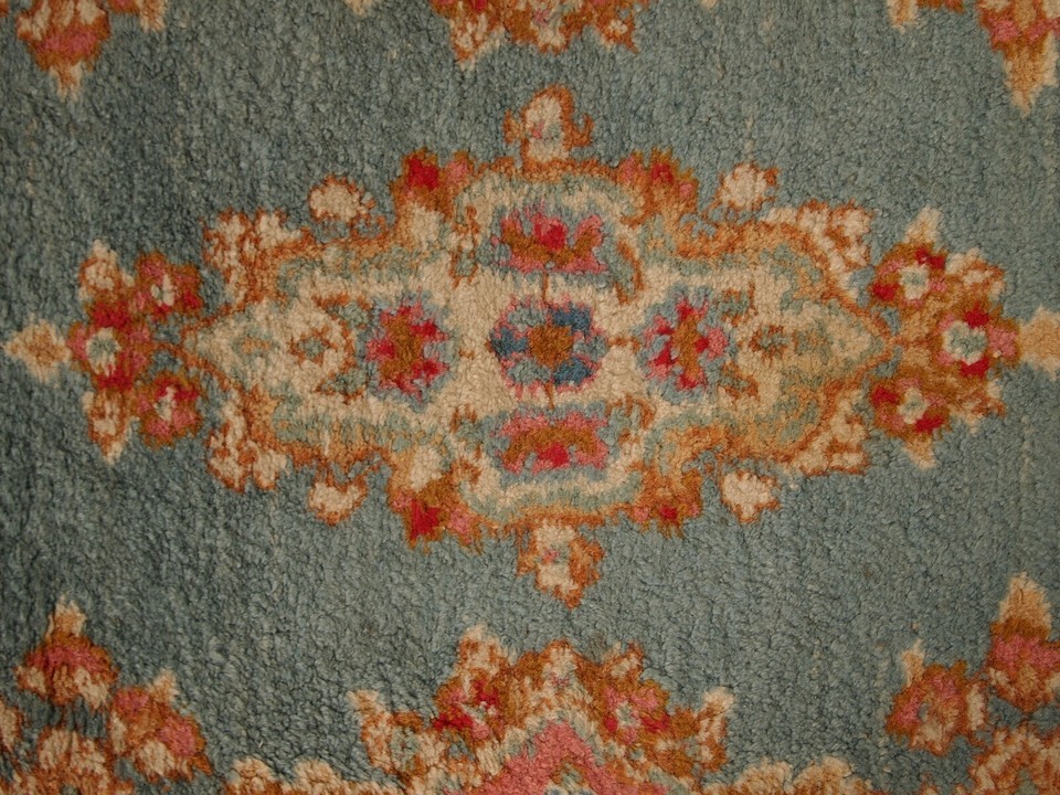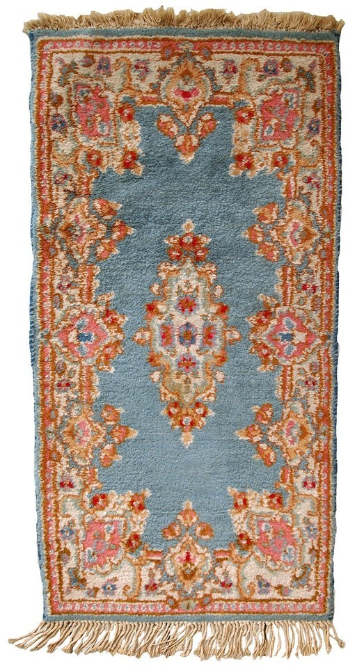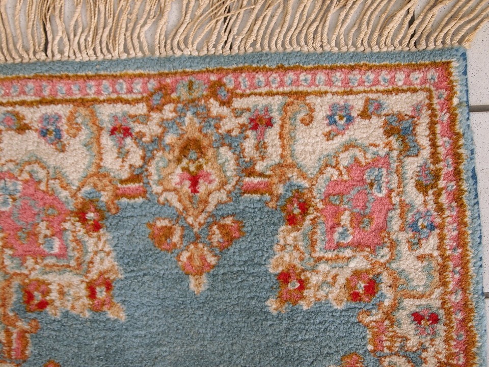Handmade vintage rug from Middle East in sky blue colour. It is in original good condition from the end of 20th century.