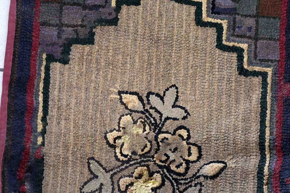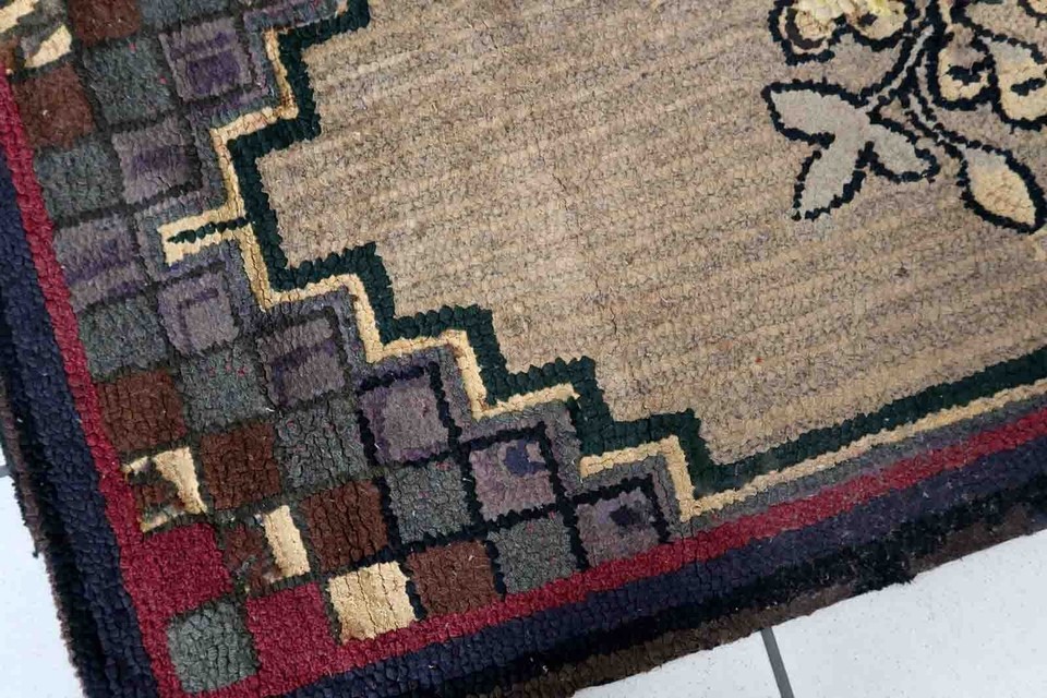 Handmade antique American Hooked rug in floral design. The rug is from the end of 19th century in good condition, the rug has old restorations.