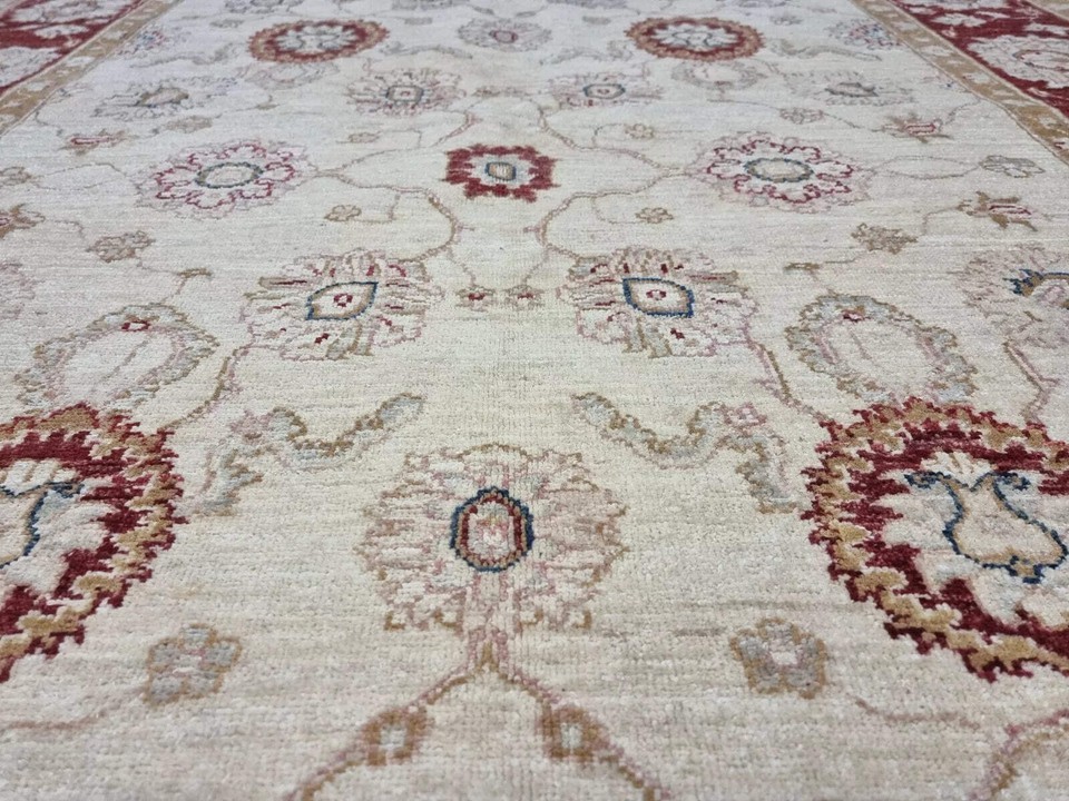 Handmade Vintage Afghan Ziegler Rug ? 1980s Wool Rug ? 4.6' x 6.6' ? Beige Oriental Design ? Elegant Vintage Craftsmanship ? This handmade vintage Afghan Ziegler rug from the 1980s showcases the timeless beauty and exceptional craftsmanship of traditional Ziegler designs. Measuring 4.6 feet (140 cm) in width and 6.6 feet (200 cm) in length, this elegant wool rug enhances the aesthetic appeal of any space, making it a versatile choice for modern or traditional interiors. ? High-Quality Handmade Rug ? Expertly hand-knotted using premium hand-spun wool on a durable cotton foundation, this rug offers softness, durability, and long-lasting beauty. Its intricate patterns and neutral beige palette reflect the refined artistry of Afghan artisans, making it a timeless piece for vintage textile enthusiasts. ? Traditional Ziegler Design in Neutral Beige Tones ? The rug features classic Ziegler motifs arranged in a harmonious composition with elegant floral and geometric patterns. Its neutral beige tones provide a calming and sophisticated ambiance, enhancing the decorative appeal of living rooms, dining areas, bedrooms, or offices. ? Timeless Elegance Cultural Heritage ? This Afghan Ziegler rug's intricate patterns and soft color palette capture the rich cultural heritage of Afghan weaving traditions. Its timeless elegance and detailed execution make it a perfect decorative piece for classic or modern interiors, adding a touch of sophistication and cultural richness to any space. ? Versatile Decorative Appeal ? Ideal for traditional or contemporary interiors, this vintage Ziegler rug complements a wide range of decor styles, enhancing the aesthetic appeal of your home or office. Its vintage character and cultural significance make it a collectible item for art lovers and textile enthusiasts. Key Features ? Type ? Handmade Vintage Afghan Ziegler Rug? Origin ? Afghanistan? Era ? 1980s? Material ? High-Quality Hand-Spun Wool on Cotton Foundation? Color Palette ? Neutral Beige Tones? Design ? Traditional Ziegler motifs with elegant floral and geometric patterns? Technique ? Hand-knotted with exceptional skill and precision? Style ? Classic Oriental Ziegler Design? Vintage Appeal ? Minor signs of age and wear enhancing its authentic charm? Handmade Craftsmanship ? Unique, one-of-a-kind piece with traditional Afghan weaving techniques? Decorative Appeal ? Suitable for living rooms, dining areas, bedrooms, or offices? Cultural Significance ? Authentic Ziegler design reflecting Afghan heritage Condition ? Overall Condition ? Excellent condition? Signs of Wear ? Minor signs of age and wear, consistent with its vintage nature? Handmade Quality ? Slight variations due to authentic handmade craftsmanship? Vintage Character ? Aged patina consistent with 1980s vintage rugs? Clean and Ready for Use ? Professionally cleaned and ready for display Dimensions Weight ? Width: 4.6 ft (140 cm)? Length: 6.6 ft (200 cm)? Weight: Approximately 5.8 kg (12.79 lbs) Special Features of Handmade Wool Ziegler Carpet ? Handmade Craftsmanship ? Authentically hand-knotted by skilled Afghan artisans? Vintage 1980s Appeal ? Reflects the timeless elegance of 1980s Ziegler rugs? Classic Ziegler Motifs ? Elegant floral and geometric patterns for visual harmony? Neutral Beige Color Palette ? Soft beige tones for a calming and sophisticated ambiance? Collectible Value ? Authentic vintage rug with cultural and historical significance? Versatile Decorative Use ? Perfect for living rooms, dining rooms, bedrooms, or offices? Timeless Elegance ? Adds a sophisticated touch to classic or modern interiors? Unique Vintage Character ? Minor signs of wear enhance its authentic vintage charm Usage Suggestions ? Elegant Home Decor ? Ideal for living rooms, dining areas, bedrooms, or offices, adding a touch of sophistication? Thoughtful Gift ? Perfect for vintage textile lovers, art collectors, or cultural enthusiasts?? Collector?s Item ? A unique vintage piece with cultural heritage and historical significance? Cultural Statement ? Showcase your appreciation for Afghan craftsmanship and Ziegler design?? Versatile Display ? Can be used as a floor rug or a decorative wall hanging