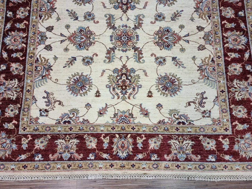 Handmade Vintage Afghan Zigler Rug 4.6' x 6.6' (140cm x 200cm) 1980s - 1D155