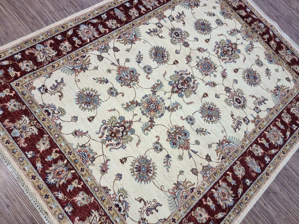 Handmade Vintage Afghan Ziegler Rug ? 4.6' x 6.6' ? 1980s ? Timeless Elegance with Traditional CraftsmanshipDiscover the exquisite beauty of this handmade vintage Afghan Ziegler rug, crafted in the 1980s using traditional hand-knotting techniques. This Oriental masterpiece is made from premium hand-spun wool on a durable cotton foundation, showcasing the classic Ziegler Royal motifs in an elegant beige color palette. Its versatile design and timeless patterns make it a perfect addition to both traditional and modern interiors. Artisan Craftsmanship and Authenticity This vintage Afghan rug is a true testament to Afghan artisan craftsmanship, featuring a 100% hand-knotted design that highlights the meticulous attention to detail. Its high-grade wool ensures durability and a soft texture, while the neutral beige tones and classic patterns provide a timeless elegance that complements a variety of interior styles. Whether you?re a collector of vintage rugs, a lover of Oriental designs, or simply looking to enhance your living space, this authentic Ziegler rug is a valuable piece that brings history, beauty, and functionality into any room. Dimensions Weight Length: 200 cm (6.6 ft) Width: 140 cm (4.6 ft)Its ideal dimensions make it versatile for various spaces, such as living rooms, dining areas, or as a stunning centerpiece in any room. Key Features of Hand-knotted Afghan Ziegler Carpet ? Origin ? Handcrafted in Afghanistan? Material ? Hand-spun Wool on Cotton Foundation? Technique ? Hand-knotted with Meticulous Craftsmanship? Design ? Classic Ziegler Royal Motifs? Color Palette ? Elegant Beige Tones? Style ? Oriental? Period ? Circa 1980s? Authenticity ? 100% Hand-knotted? Quality ? Durable, Soft Texture with High-Grade Wool? Versatility ? Complements Traditional and Modern Interiors Condition ? Overall Condition ? Excellent Condition for its Age? Professional Care ? Professionally Cleaned and Well-Preserved? Durability ? High-Quality Wool Ensures Longevity? Authentic Aging ? Beautiful Patina, Enhancing Vintage Charm Special Features ? Handmade Authenticity ? 100% Hand-knotted Afghan Rug? Traditional Craftsmanship ? Meticulously Crafted by Afghan Artisans? Cultural Heritage ? Classic Ziegler Royal Design Reflecting Afghan Tradition? Artistic Design ? Timeless Patterns with Neutral Beige Palette? Collectible Value ? Ideal for Collectors of Vintage and Oriental Rugs? Versatility and Style ? Perfect for Traditional and Modern Home Decor Usage Suggestions ? Home Decor ? Enhance Your Living Room, Dining Area, or Bedroom? Collectible Gift ? Perfect for Rug Collectors and Vintage Decor Enthusiasts? Timeless Elegance ? Adds Warmth and Sophistication to Any Space?? Artistic Display ? Versatile Piece for Both Traditional and Contemporary Interiors? Functional Design ? Soft Texture with High Durability for Everyday Use? Easy Maintenance ? Professionally Cleaned and Ready for Immediate Use