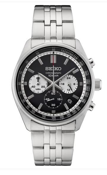Seiko Mens Watch Essentials SSB429 Stainless Steel Quartz 100m Black Dial