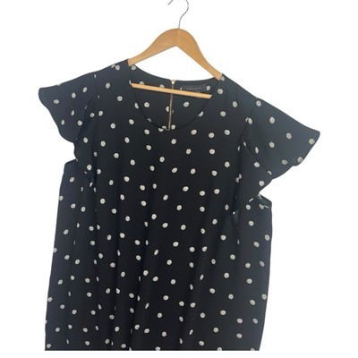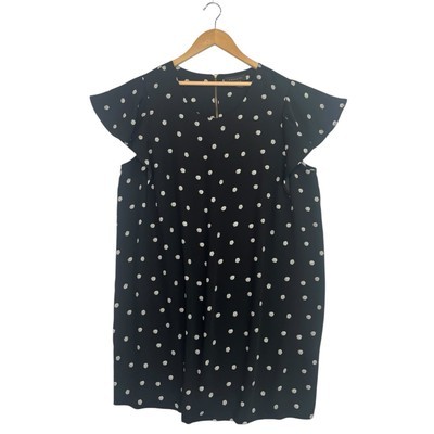 Tahari Dress Womens 1X Black Shift Polka Dot Short Flutter Sleeve Classic Girly