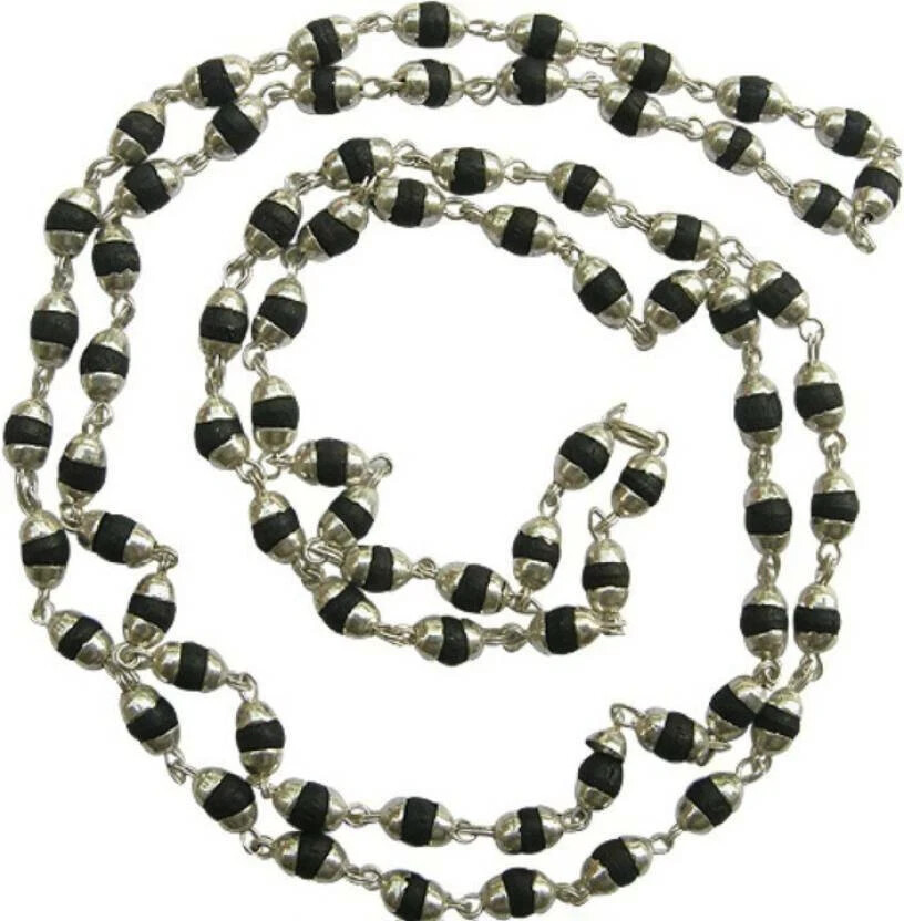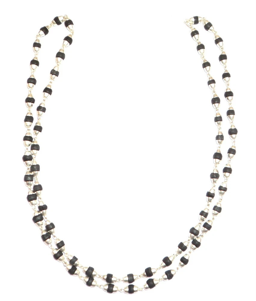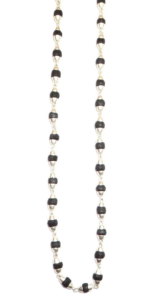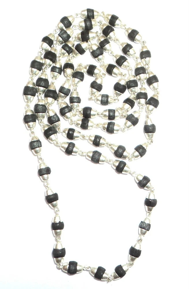 Black Tulsi Beads Mala In Silver Caps, 23 inch approx