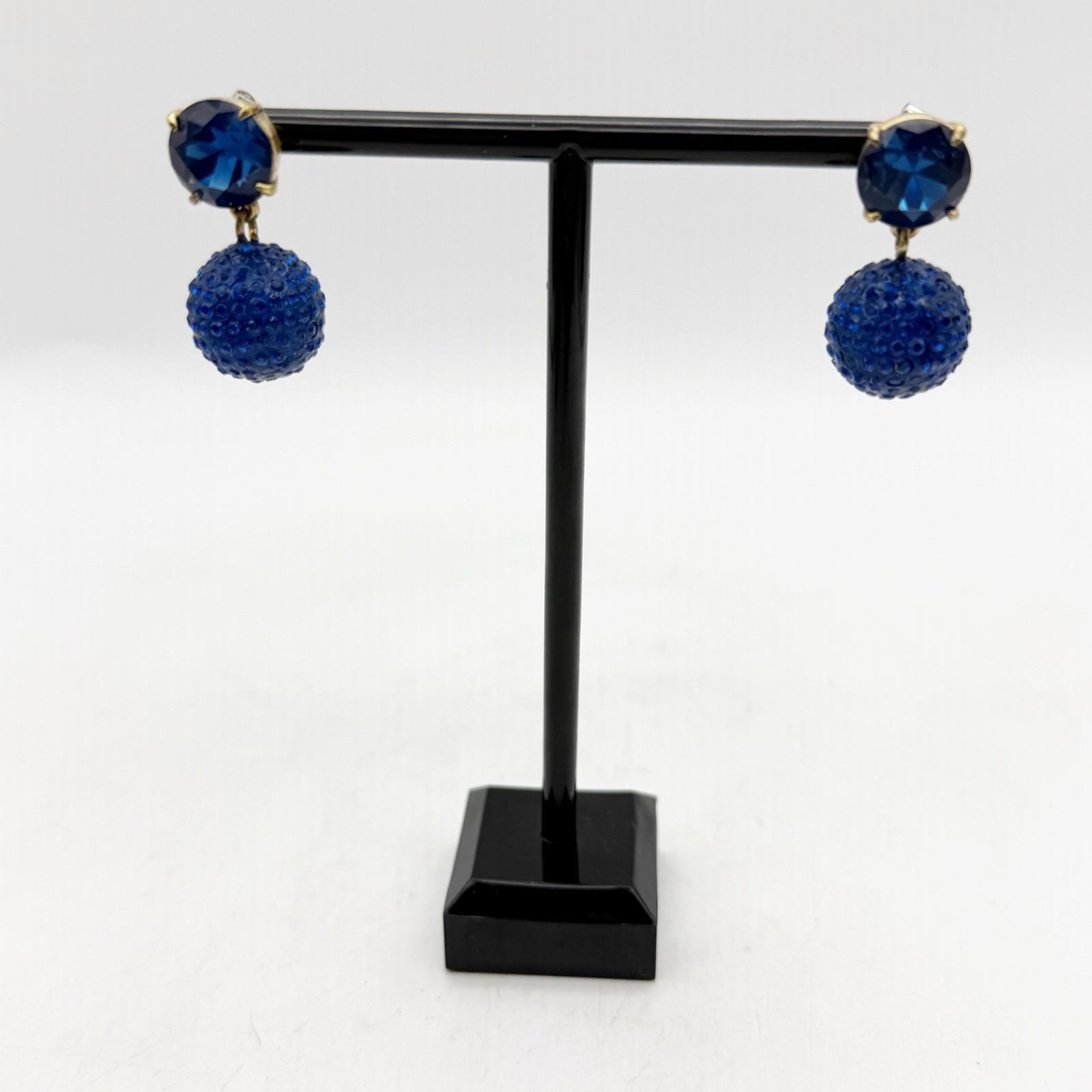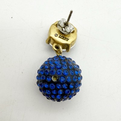 J CREW PAVÉ RESIN CRYSTAL BALLS POST EARRINGS Blue Gem Gold Tone