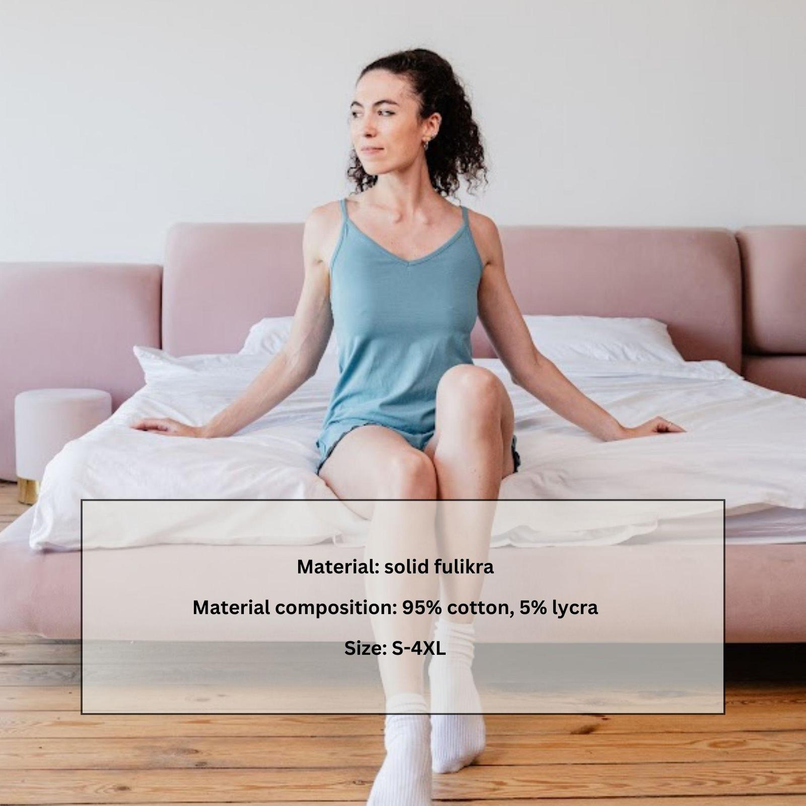 This women's sleepwear set, consisting of a top and shorts, is designed for comfortable and stylish relaxation. Made from lightweight and soft materials, it ensures a feeling of lightness and freedom of movement. Perfect for the warm season, this set adds elegance to your evening wardrobe. Choose this women's sleepwear set to enjoy pleasant dreams and feel enchanting even at night.