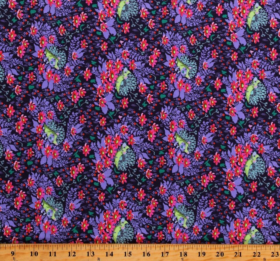 Cotton Tula Pink Hedgehogs Flowers Purple and 50 similar items