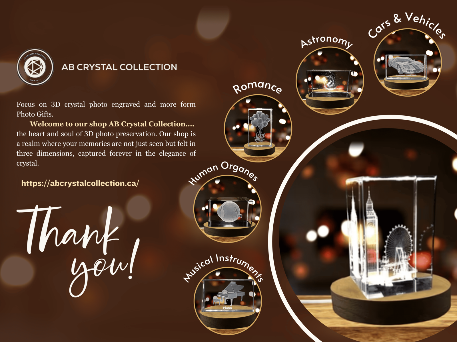 First, our designers create a unique and detailed 3D model. Then, our skilled technicians etch the 3D model into crystal using advanced laser technology.