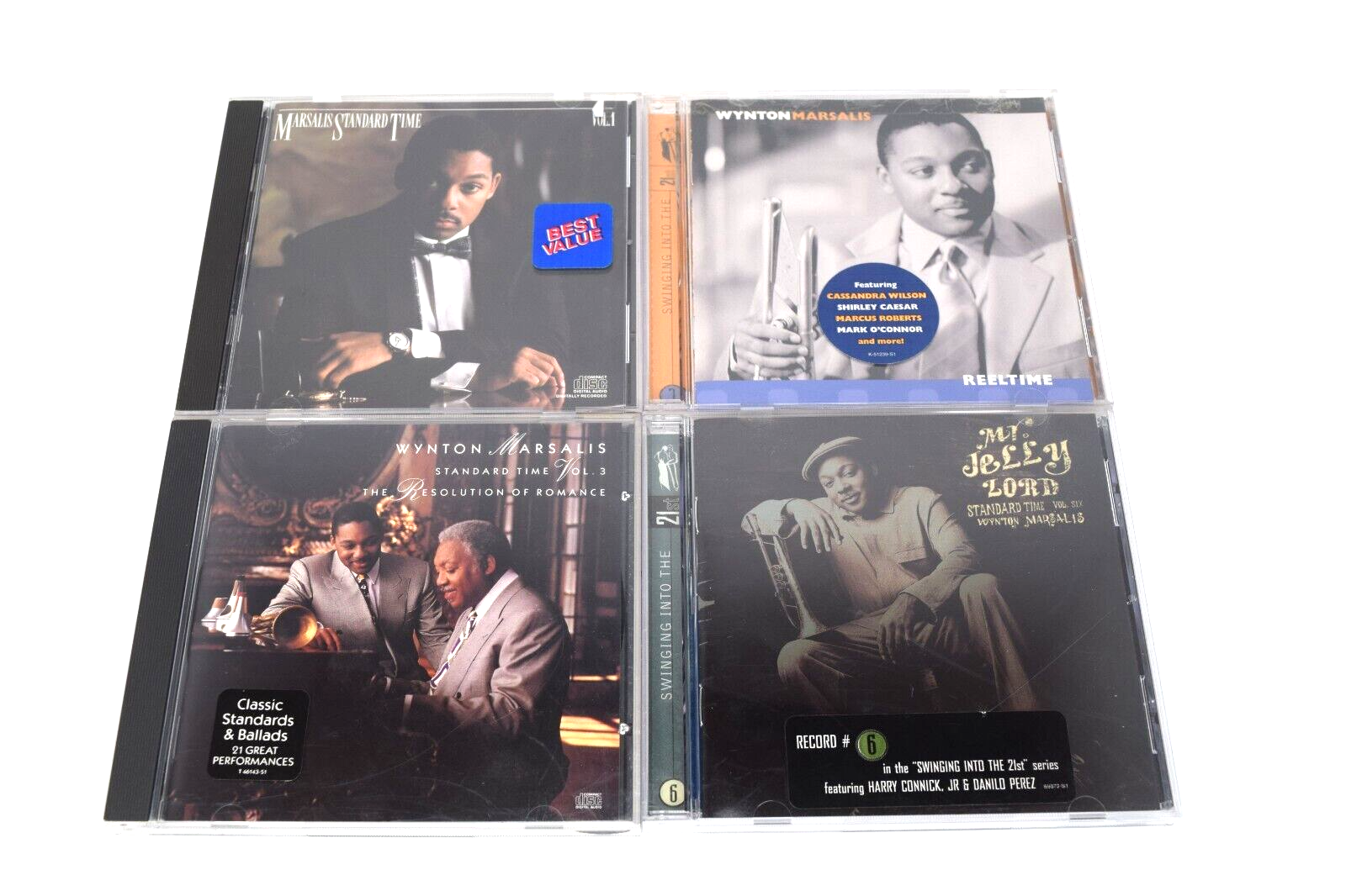 Lot of 4 Wynton Marsalis CDs Standard Time 1, 3, 6 and Reeltime. Pre-owned in good condition. Discs have little to very light wear. Liner notes are in nice shape. Cases are good with some normal shelf wear. See all photos for details and condition. Will ship USPS Media Mail.