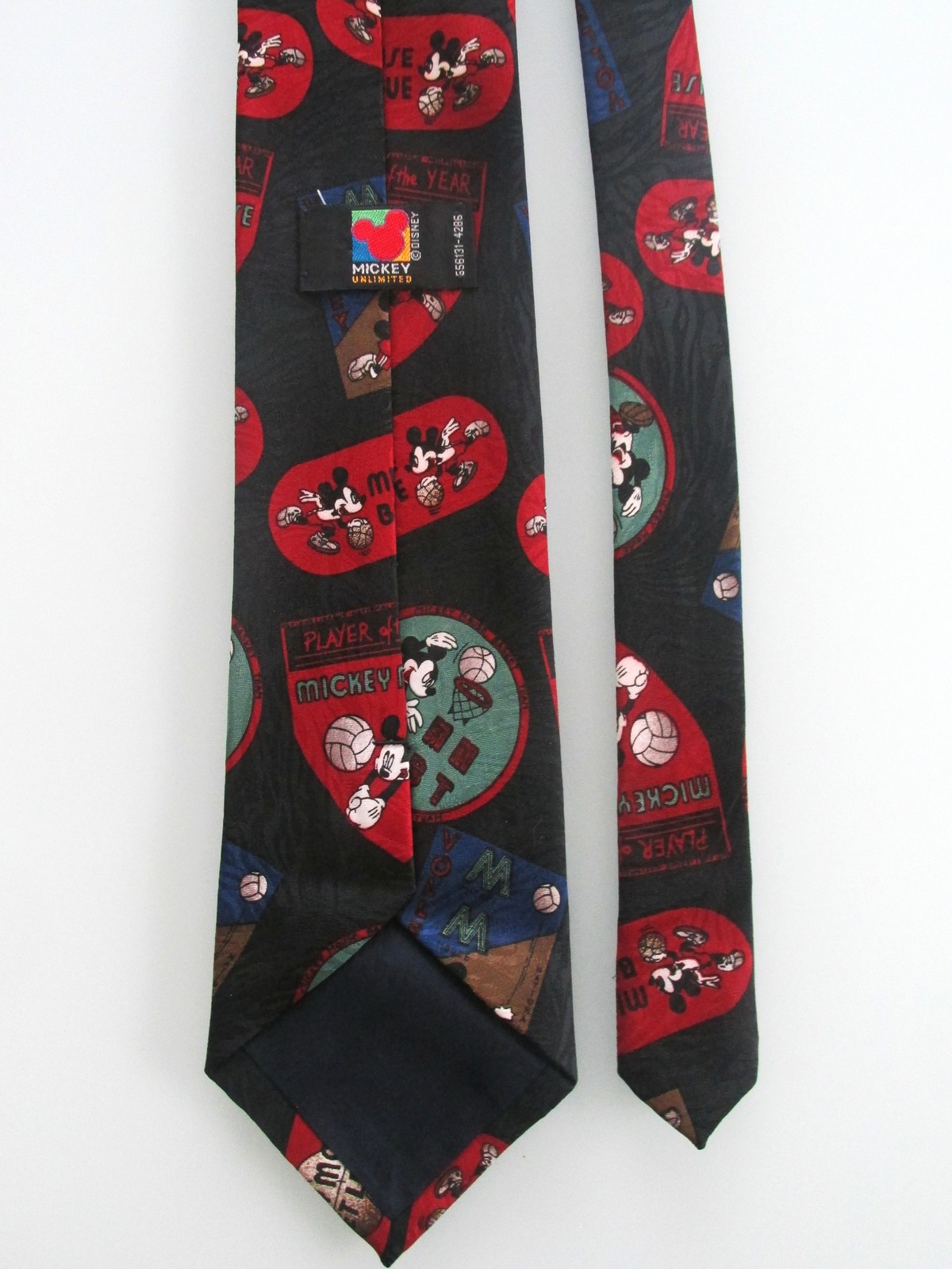 Description: Up for sale is a Disney/Mickey Mouse (NWOT) men's tie. This tie is made of polyester. It has a multicolored Mickey Mouse sports themed (volleyball)pattern in red, green, blue, white black on a black background.The dimensions are 56" long x 3.75" wide. Please See photos for a more accurate depiction of color and print. This is a great tie for any Mickey Mouse fan or collector. This tie is in excellent condition.