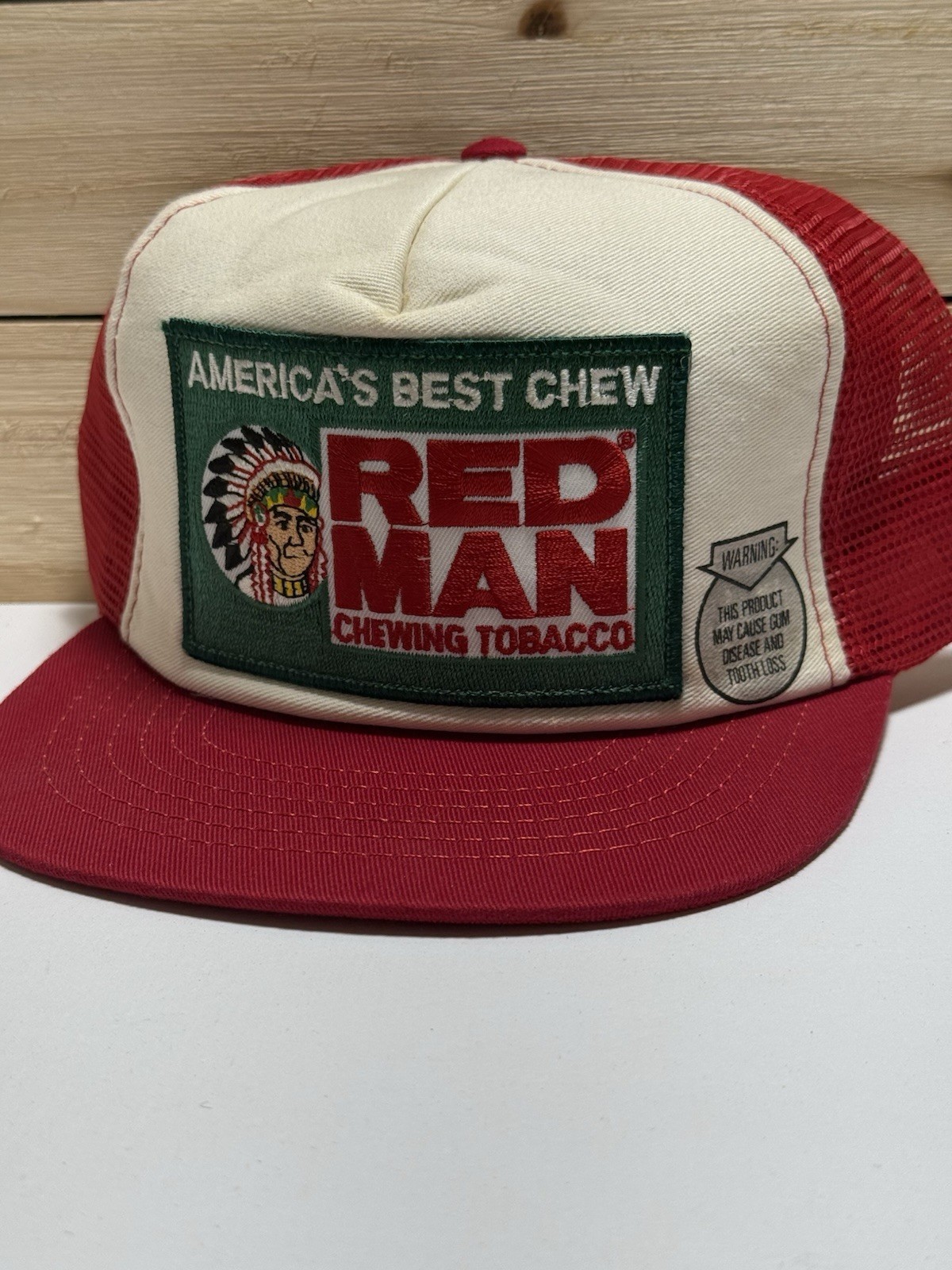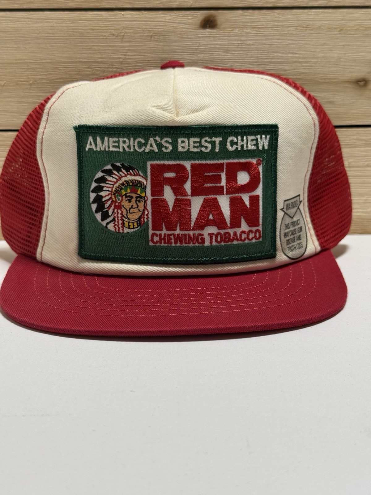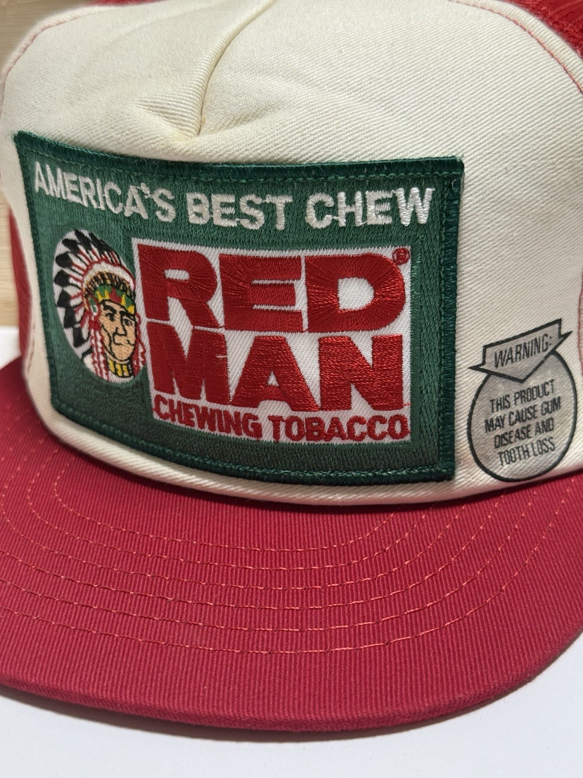 Vintage Red Man Chewing Tobacco Big Patch Mesh Snapback Trucker Hat Made USA NOS
