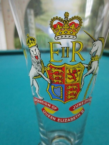 1- CORONATION OF QUEENS ELIZABETH CRYSTAL BEER GLASS 7 1/2" [weatherlyblsckbskt]