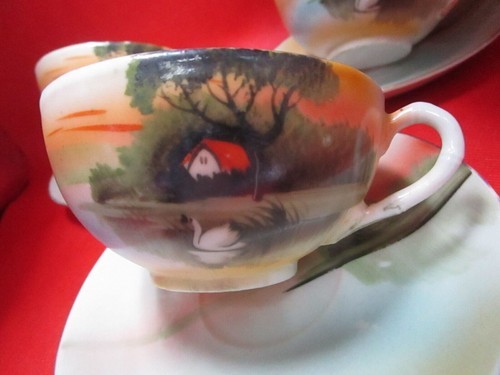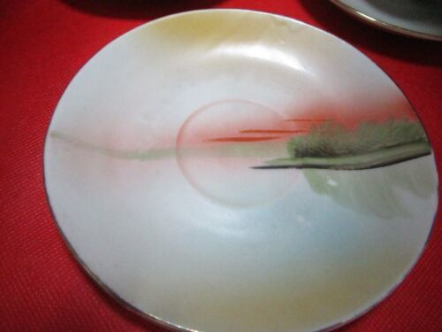 Noritake luster matte 3 cups and saucer and creamer scenic design 7 pcs