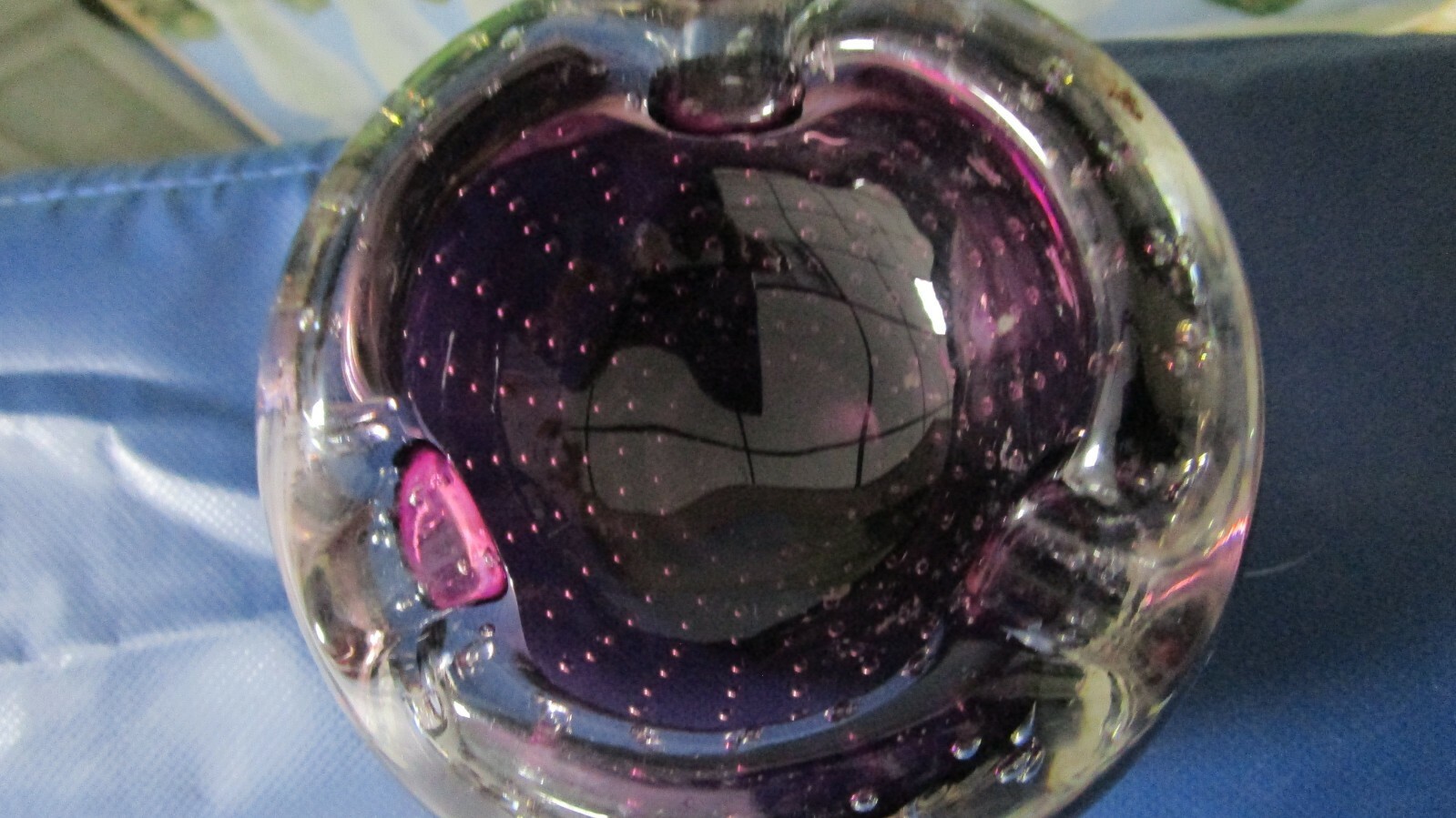 ASHTRAY CRYSTAL HANDBLOWN PURPLE CONTROLLED BUBBLES MURANO ITALY[10E]