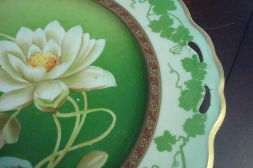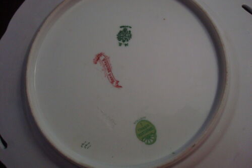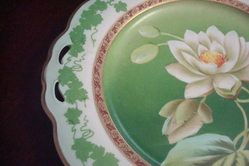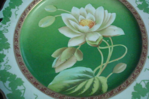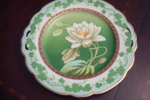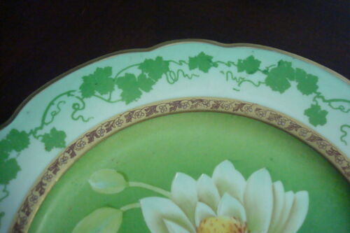 MZ Moritz Zdekauer Austria green platter 10 " diam decorated w/ white roses[# 36