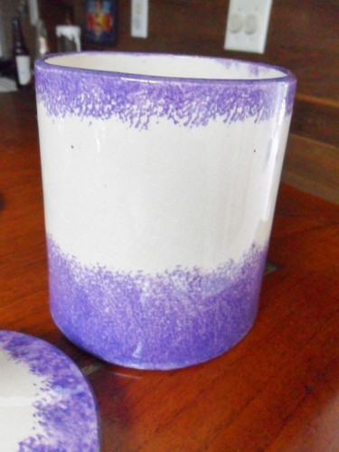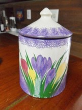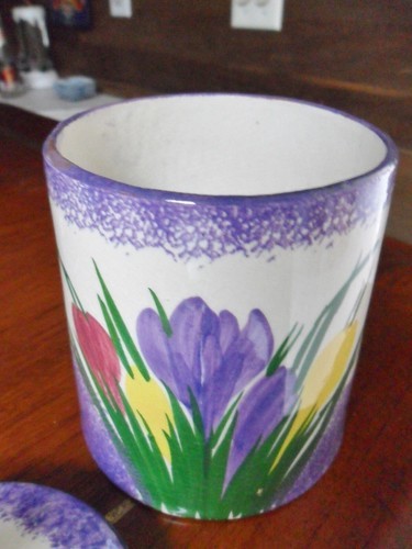 Antique Longpark Torquay England Devon Pottery Jam canister, 6 1/4" tall by 4" diam, very good condition, some light surface scratches commensurate with age [*77C-BASKTRACK1]