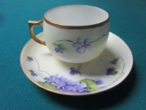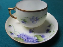 JAEGER BAVARIA GERMANY VIOLET BOUQUETS CUP AND SAUCER ]*3b] CUP IS 2 3/4 X 3 1/2 " AND SAUCER IS 5 1/2" DIAM, VERY GOOD CONDITION, SOME LIGHT SURFACE SCRATCHES COMMENSURATE WITH AGE [89B-BSKTRACK6]
